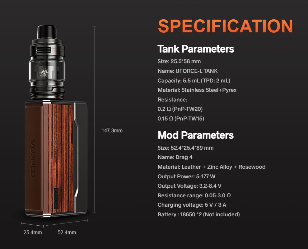 Equipado con un ingenioso tanque Uforce-L de flujo de aire superior a prueba de fugas. Usa resistencias PnP, con tres entradas de aire superiores, diseñado para ahorrar e-líquido y reducir la potencia de salida en un 10%. Ofrece carga estándar y un modo ECO para un vapeo más prolongado y estable.